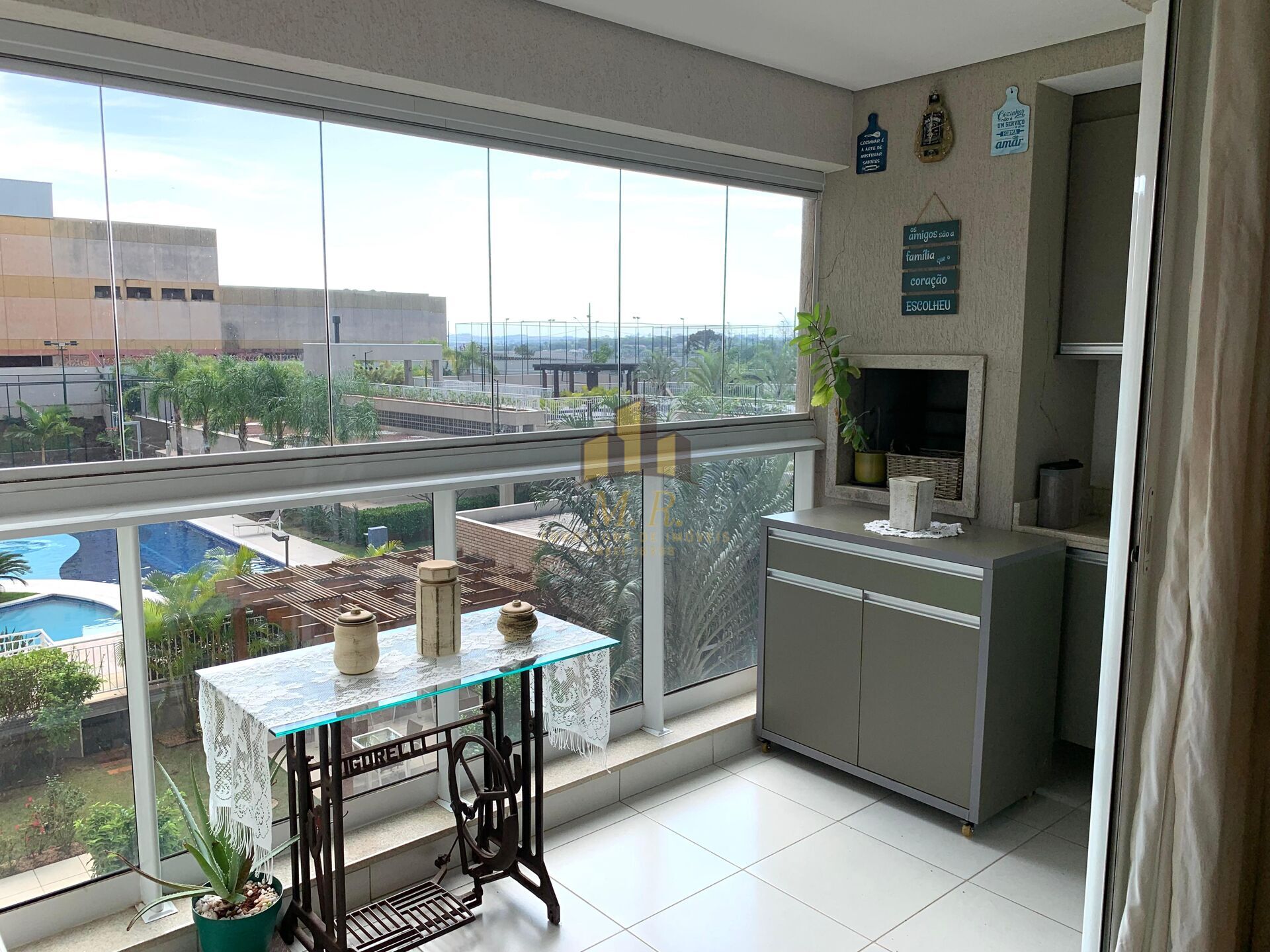 - Sacada com churrasqueira, armários e fechamento em skin glass 🍖🌇