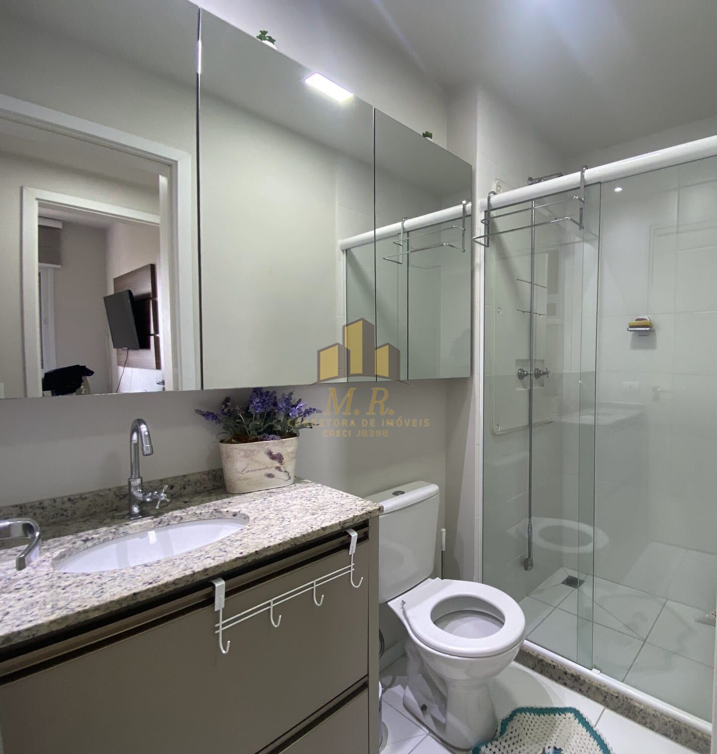 ✔ Banheiros com box em vidro e armários planejados
